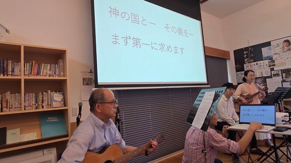 | 9/20(土):夜には久しぶりに賛美集会がありました。 若者たちがリードしてくださりともに一つとなって 賛美をお捧げしました。 |