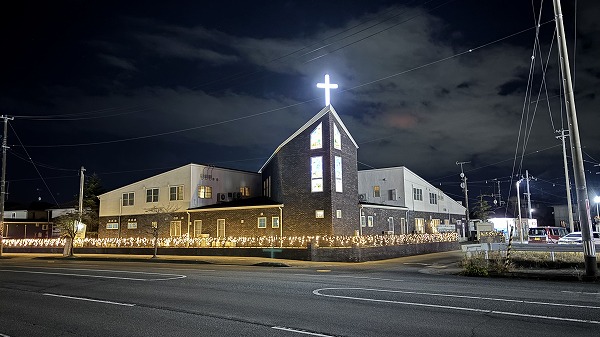 | 11/22(土):各チャペルもクリスマスシーズンに向けて ライトアップがされました。 特に小高チャペルは小高イルミネーションスポットとして 公式に登録されていますので用いられることを期待します。 |