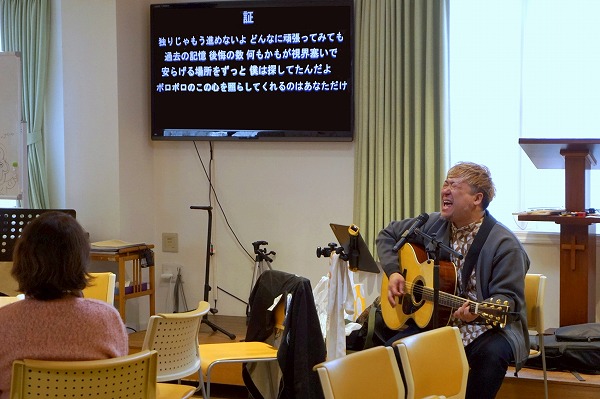 | 12/14(日):クリスマスコンサート礼拝が行われました。 ナイトdeライトの平野さんが 心のこもった歌を歌ってくださいました。 お昼の時間にも証をしてくださり恵まれた時でした。 |