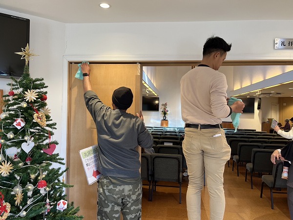 | 12/28(日):礼拝後には青年たちが教会の掃除をしてくださいました。 ご奉仕に感謝です。 |