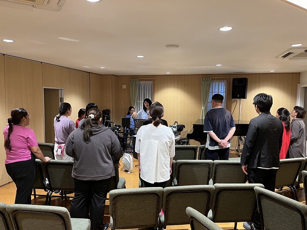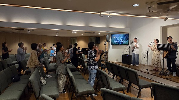 | 9/20(土):夜には久しぶりに賛美集会がありました。 若者たちがリードしてくださりともに一つとなって 賛美をお捧げしました。 |