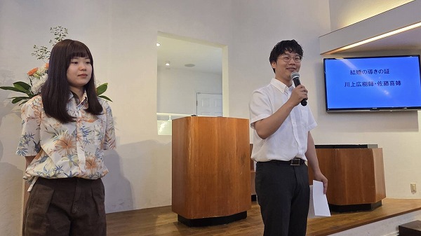| 7/5(土):川上広樹先生と佐藤喜姉の 結婚式が持たれました。 素晴らしい祝福のひと時に感謝いたします。 これからのお二人の歩みの上に 主の祝福が豊かにありますように。 |