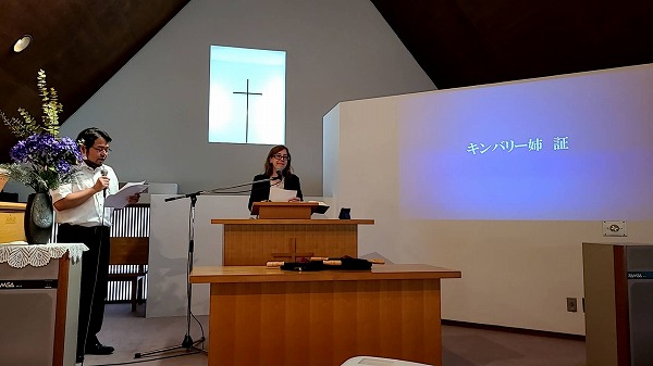 | 6/22(日):午後からは大野チャペルで キンバリー姉が証をしてくださいました。 これまで9カ月のお働きに感謝します。 |