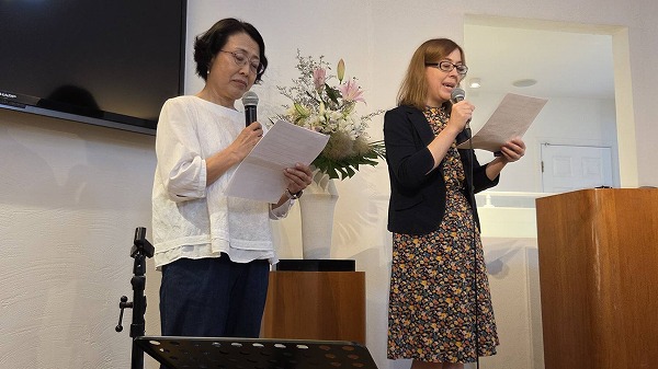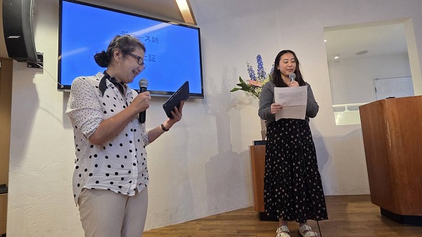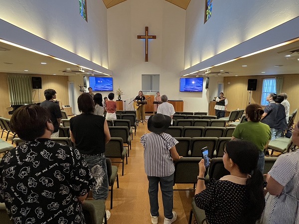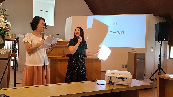 | 7/20(日):デニース姉が礼拝で証をしてくださいました。 海外からきてくださっている働き人たちに感謝いたします。 |