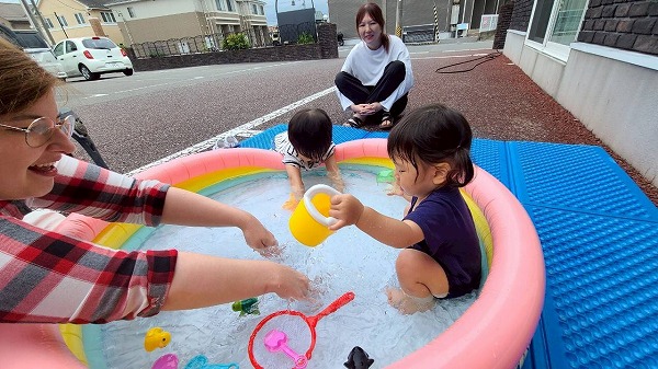 | 7/11(金):こひつじクラスは 夏休み前の最後の集まりでした。 みんなで楽しく水遊びをしました。 |