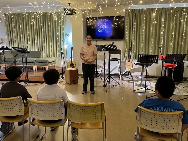 | 7/19(土):英会話クラス、ウクレレクラスの発表会として アコースティックナイトが開催されました。 良い雰囲気の中で楽しい時を持つことができ感謝いたします。 |