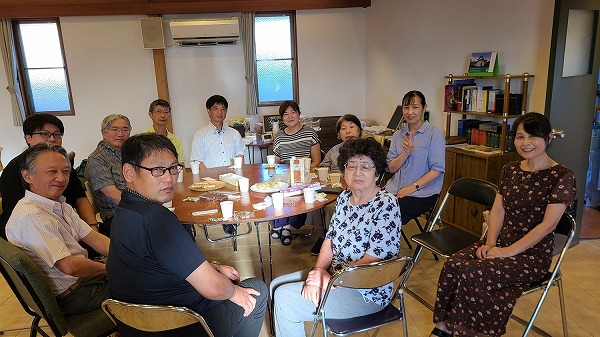 | 7/27(日):今月の大野礼拝がもたれました。 礼拝後のお茶の交わりにも感謝します。 |