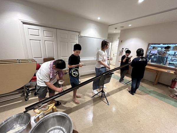 | 8/16(土):WAKEの夏のお楽しみとして 流しそうめんをしました。 夏の楽しい思い出となり感謝します。 |