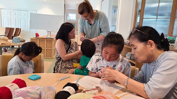 | 8/19(火):ちくちく広場ではミチ姉が 編み物を教えてくださいました。 楽しい交わりの時に感謝します。 |