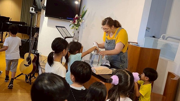 | 6/29(日):キンバリー姉は礼拝の中で 感謝の証をしてくださり、 礼拝後には感謝の愛餐会が持たれました。 生徒さんたちも来てくださいました。 |