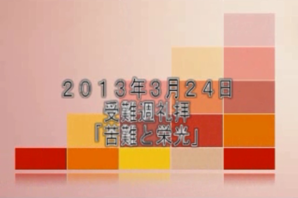 3月24日 受難週礼拝 「苦難と栄光」 メッセージビデオ 泉のチャペルにて 写真をクリックしてください。 44min 129MB |