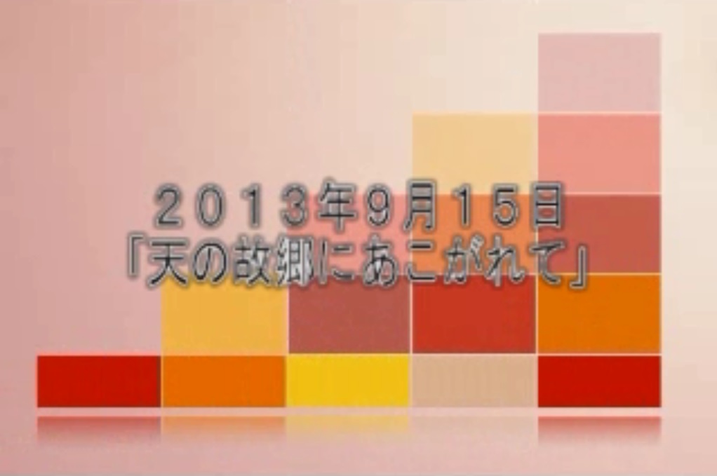 9月15日 「天の故郷にあこがれて」 メッセージビデオ 泉のチャペルにて 写真をクリックしてください。 39min 178MB |