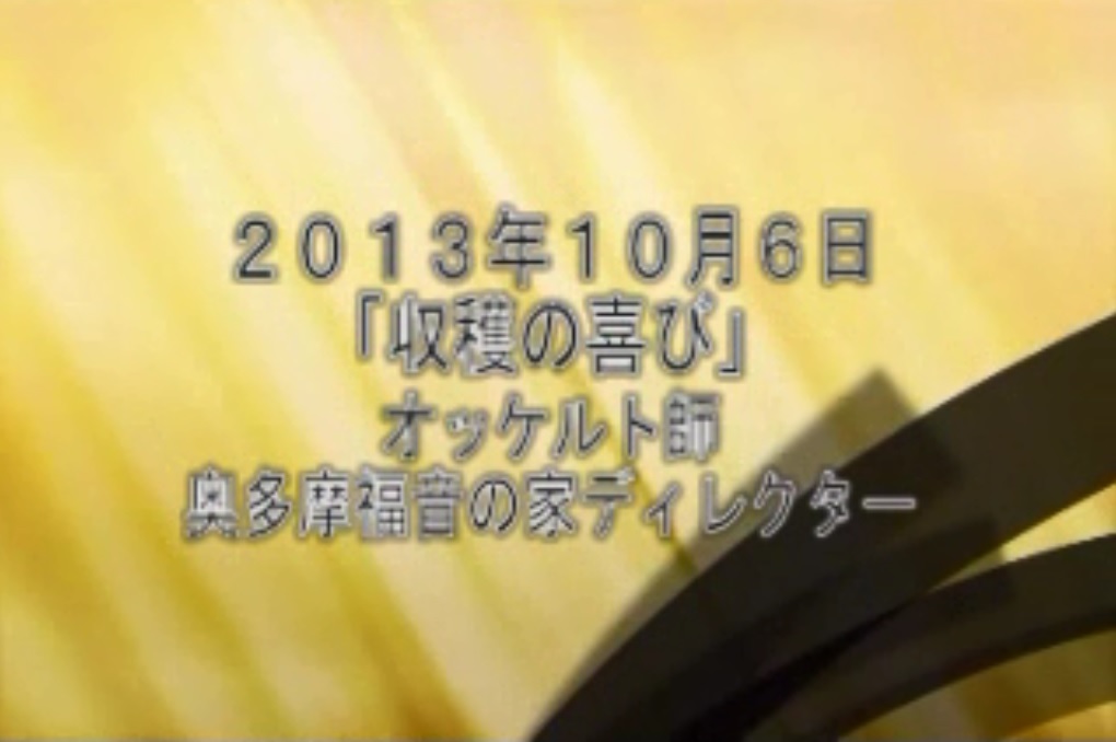 10月6日 「収穫の喜び」 メッセージビデオ オッケルト師 奥多摩福音の家ディレクター 泉のチャペルにて 写真をクリックしてください。 34min 127MB |