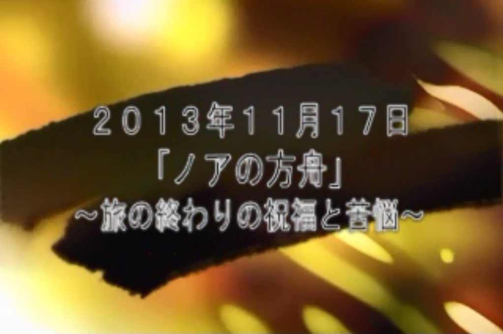 11月17日 「ノアの方舟」 〜旅の終わりの祝福と苦悩〜 メッセージビデオ 泉のチャペルにて 写真をクリックしてください。 46min 190MB |