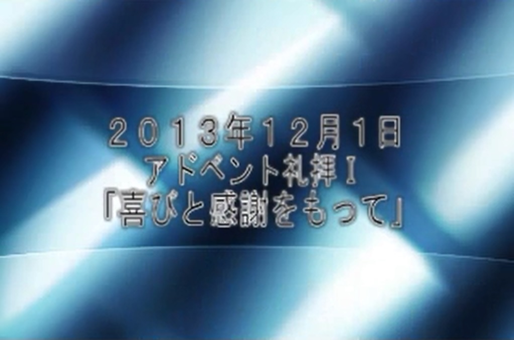 12月1日 アドベント礼拝T 「喜びと感謝をもって」 メッセージビデオ 泉のチャペルにて 写真をクリックしてください。 37min 111MB |