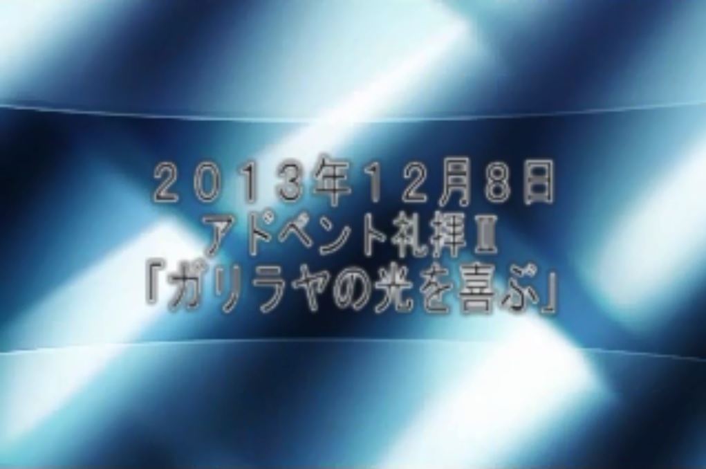 12月8日 アドベント礼拝U 「ガリラヤの光を喜ぶ」 メッセージビデオ 泉のチャペルにて 写真をクリックしてください。 42min 158MB |
