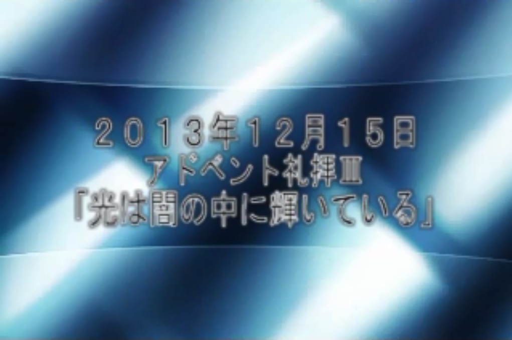 12月15日 アドベント礼拝V 「光は闇の中に輝いている」 メッセージビデオ 泉のチャペルにて 写真をクリックしてください。 45min 151MB |