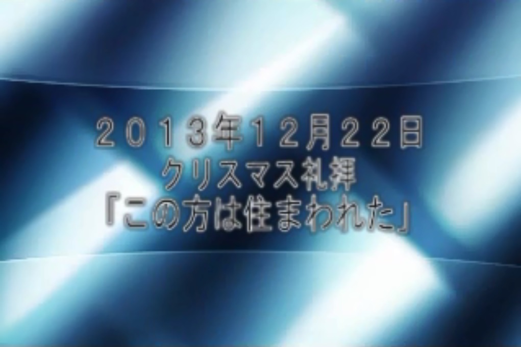 12月22日 クリスマス礼拝 「この方は住まわれた」 メッセージビデオ 泉のチャペルにて 写真をクリックしてください。 41min 171MB |