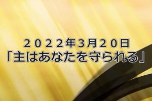 3月20日 「主はあなたを守れれる」 メッセージビデオ 泉のチャペルにて 写真をクリックしてください。 40min 175MB |