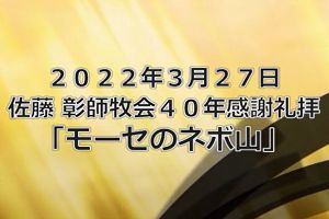 3月27日 「モーセのネボ山」 メッセージビデオ 泉のチャペルにて 写真をクリックしてください。 54min 237MB 礼拝にて配布された文章1 礼拝にて配布された文章2 |