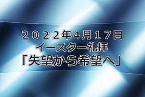 4月17日 「失望から希望へ」 メッセージビデオ 泉のチャペルにて 写真をクリックしてください。 46min 201MB |