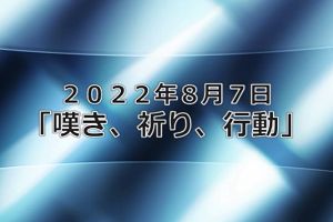 8月7日 「嘆き、祈り、行動」 メッセージビデオ 泉のチャペルにて 写真をクリックしてください。 47min 206MB |