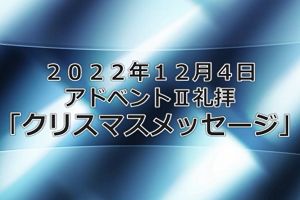 12月4日 「クリスマスメッセージ」 メッセージビデオ 泉のチャペルにて 写真をクリックしてください。 53min 232MB |