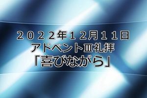 12月11日 「喜びながら」 メッセージビデオ 泉のチャペルにて 写真をクリックしてください。 42min 182MB |