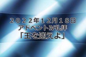 12月18日 「王を迎えよ」 メッセージビデオ 泉のチャペルにて 写真をクリックしてください。 47min 207MB |