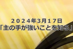 3月17日 「主の手が強いことを知る」 メッセージビデオ 泉のチャペルにて 写真をクリックしてください。 46min 206MB |